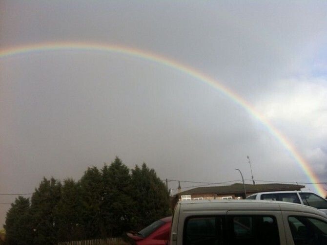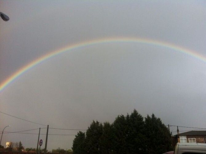 En Valderas la lluvia de ayer por la tarde originó un impresionante arcoiris doble y completo. Dos arcos de colores que cruzaron el cielo durante unos pocos minutos, los justos para poderlos inmortalizar. Antidio Gómez nos envía las fotos que tomó desde la puerta de su taller.
