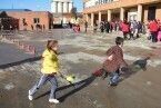 Los 200 niños del centro corrieron en una iniciativa conocido como 'Kilómetros de solidaridad'. El objetivo recaudar fondos para Save The Children que serán destinados para ayuda a los niños de Etiopía. La idea es sencilla, los niños corren y sus patrocinadores (padres, familia, amigos...) entregan donaciones para la causa según los kilómetros -realmente vueltas adaptadas a cada edad-.