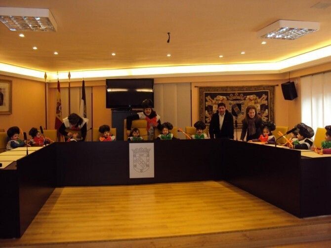 La visita formaba parte de una excursión por la localidad con motivo del Carnaval, por lo que acudieron disfrazados llenando de color y diversión cada rincón del Ayuntamiento. Durante la visita, vieron la sala de exposiciones, el despacho del alcalde y el salón de plenos donde se convirtieron en concejales por un rato ocupando sus sillas. Al finalizar les obsequiaron con un pequeño detalle y con las típicas orejas de carnaval.