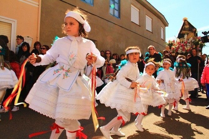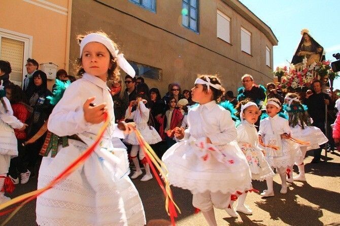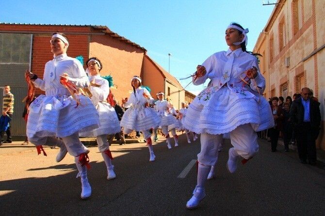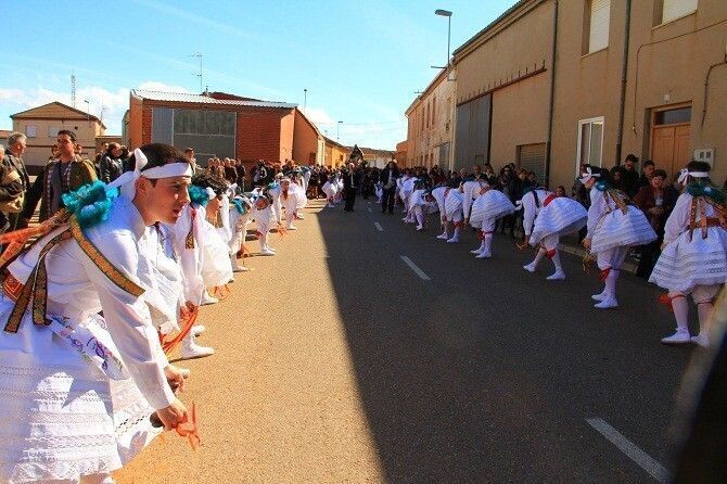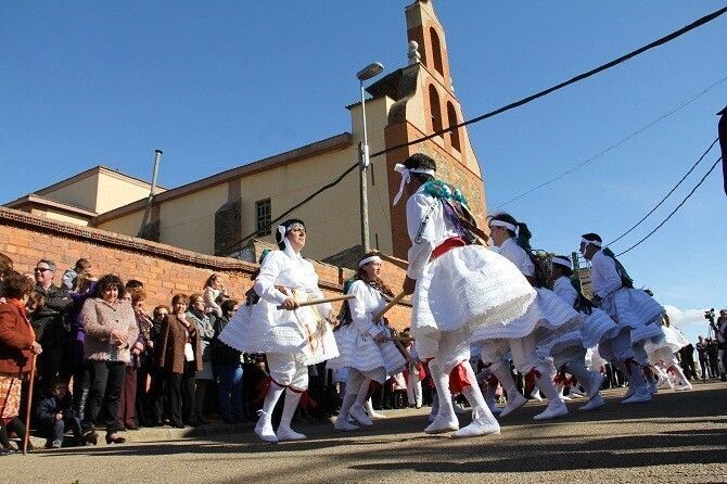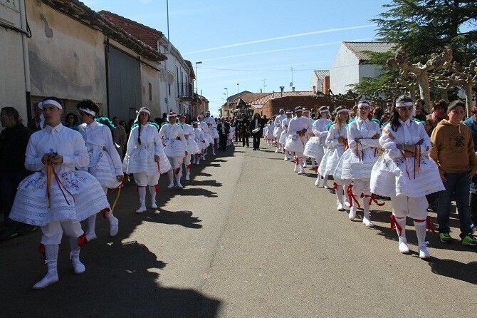 Los danzantes de Pobladura, con sus almidonas faldas blancas y sus cintas de colores en la espalda, son pieza clave de esta fiesta en la que a son de dulzaina ejecutan ancestrales danzas entre las que no faltan el paloteo.