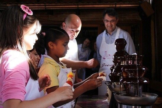 Niños que son auténticos chefs, y es que ayer todos los niños recibieron un diploma del curso Asemcochel Junior 2014 en el transcurso de una fiesta celebrada en la Huerta de Don Pedro. Antes tuvo lugar la última clase de cocina cuyo fin era aprender a disfrutar de la fruta de una forma muy dulce... ¡con chocolate!. Más de uno se chupó los dedos y difícil fue encontrar alguno que no le gustara la brocheta propuesta por los cocineros... brocheta de frutas con chocolate.