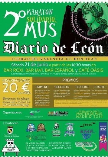 El próximo 21 de junio, a partir de las 16:30 horas, Valencia de Don Juan vivirá la segunda edición del Maratón Solidario de Mus organizado por Asemco y Diario de León a favor de la Asociación de Alzheimer Alcorzanza.