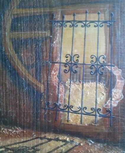 La exposición está compuesta por una treintena de pinturas hechas siempre con materiales naturales. De ahí el título como barro, masilla, terracota, y en soporte de madera, contraventanas, pizarra, piedras, cuero, etcétera.