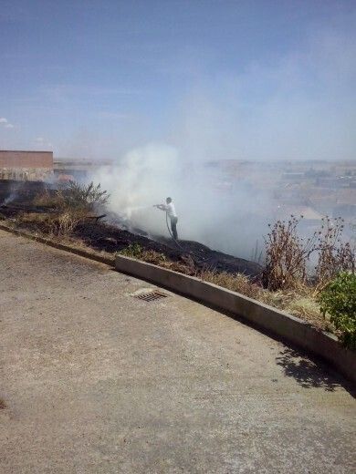 Un pequeño incendio ha sorprendido hoy a los vecinos del barrio de Los Castillos de Valderas. Pasadas las 14:00 horas ha ardido una de las laderas del barrio.