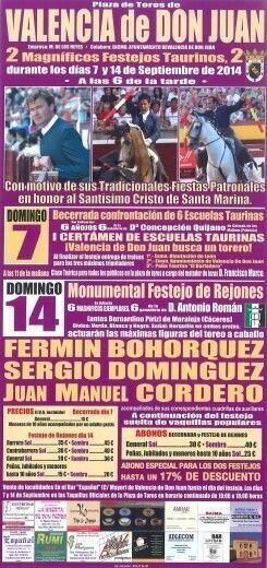 Las fiestas patronales de Valencia de Don Juan contarán con dos festejos taurinos que se celebrarán los días 7 y 14 de septiembre. El cartel ha sido presentado esta mañana en el Ayuntamiento de Valencia de Don Juan en un acto que ha corrido a cargo del teniente alcalde, José Jiménez, del concejal de Festejos, Alejandro Prieto, del presidente de la Peña Taurina El Burladero Coyantino, Manuel Lumbreras, y del tesorero de la Peña Taurina, Jesús Santos.