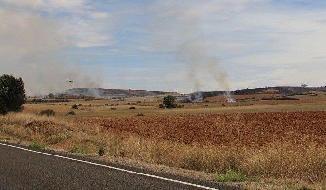 La actuación de un helicóptero de bomberos ha sido necesaria para controlar este incendio forestal declarado esta mañana y que continuaba aún activo (alrededor de las 14:45 horas de hoy). El incendio está localizado entre Valencia de Don Juan y Quintanilla de los Oteros, en el margen derecho de la carretera que va a Matallana de Valmadrigal.