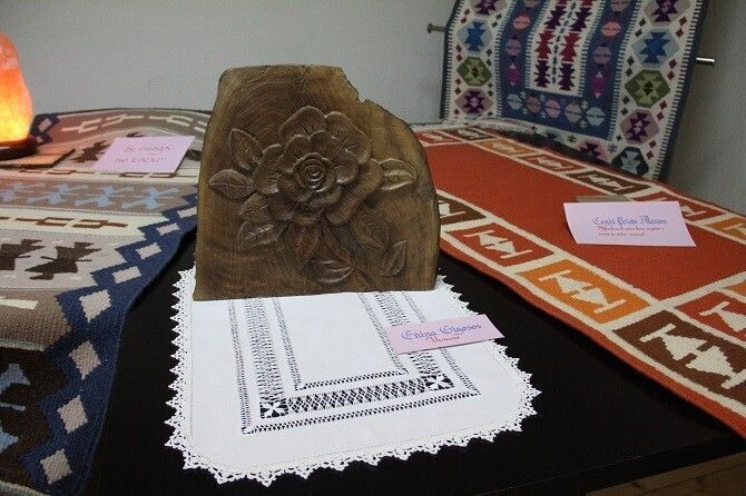 Manteles, bordados, artesanías de madera, fotografías... una colección que ha unido con el mismo fin una pequeña representación de las obras de estas mujeres que encuentran a través de la artesanía un canal para su creatividad.