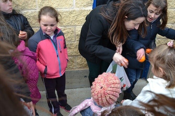Como premio, todos los presentes tuvieron un dulce obsequio. regalo de los árboles... una mandarina.