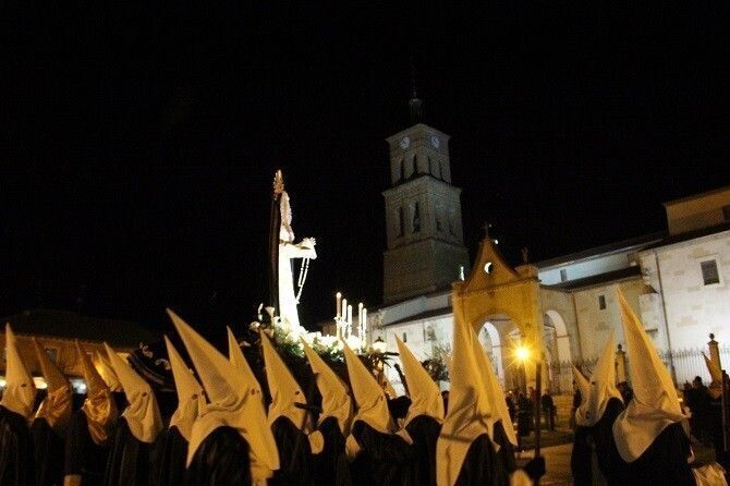 Villamañán posee una gran tradición de procesiones en Semana Santa. La devoción y el fervor religioso se siente en cada una de las procesiones. Ayer, Viernes de Dolores finalizó la novena y tuvo lugar la primera de las procesiones semanasanteras. Con un profundo silencio y respeto, la imagen de Nuestra Señora de los Dolores recorrió el centro de la localidad.