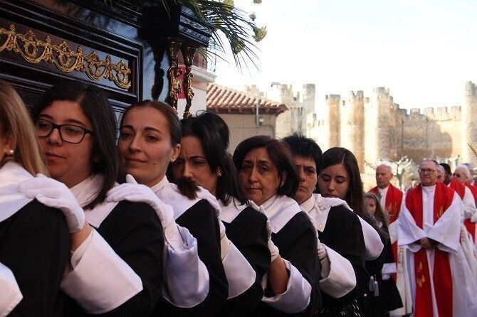 Pequeños y mayores acompañaron la procesión con palmas y ramas de olivo y pino.