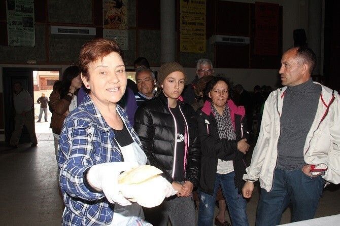 Ayer, debido a la climatología y peligro de lluvia el tradicional reparto de pan y queso ofrecido por el Ayuntamiento se trasladó a la Casa de Cultura de Villamañán. Así, los romeros después de la preceptiva misa continuaron con la fiesta en el salón municipal.