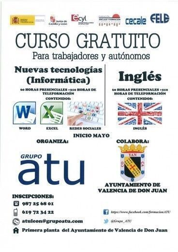 Ambos cursos son gratuitos, impartidos por el Grupo ATU, con la colaboración del Ayuntamiento de Valencia de Don Juan y financiados por el Ministerio de Empleo y Seguridad Social, la Junta de Castilla y León, el Servicio Público de Empleo de Castilla y León, la Fundación Anclaje y Formación Castilla y León, CECALE y FELE.