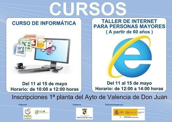 El Ayuntamiento de Valencia de Don Juan, a través de la Concejalía de Formación y Empleo oferta a partir del mes de mayo un conjunto de cursos dirigidos tanto a trabajadores y autónomos como a mayores y público en general.
