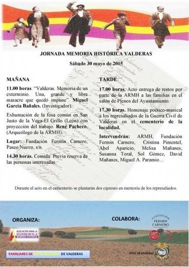 La Asociación para la Recuperación de la Memoria Histórica (ARMH) realiza mañana sábado, 30 de mayo, un homenaje a nueve vecinos de Valderas represaliados durante el franquismo, cuyos restos aparecieron en una fosa común en San Justo de la Vega.