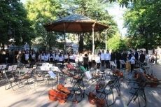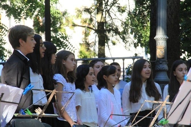 En el concierto de clausura participó el coro del Curso -integrado por 50 voces-, dos orquestas y la Banda del Curso que actuó conjuntamente con la Banda de Música coyantina.