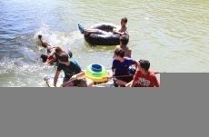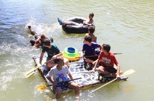 Decenas de artilugios flotantes participaron ayer en una de las actividades más divertida y refrescante del verano valderense.
