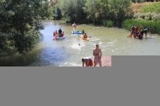 Así a remazos completaron el trayecto algo más de una veintena de embarcaciones. Y también hubo participantes que rehuyeron eso de remar y se dejaron llevar por la corriente tranquilamente... llegar llegaron todos. Eso sí, unos más mojados que otros.
