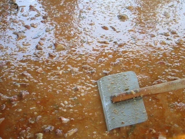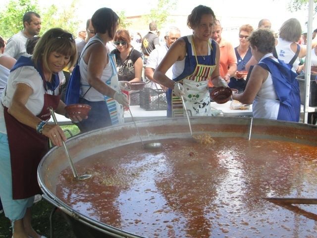 Pan, alubias y una guindilla para los que les guste el picante fue el menú obligado, junto a su cacharro de barro y su cuchara de madera tradicional. Vecinos y visitantes disfrutaron así de la legumbre por excelencia de la localidad.
