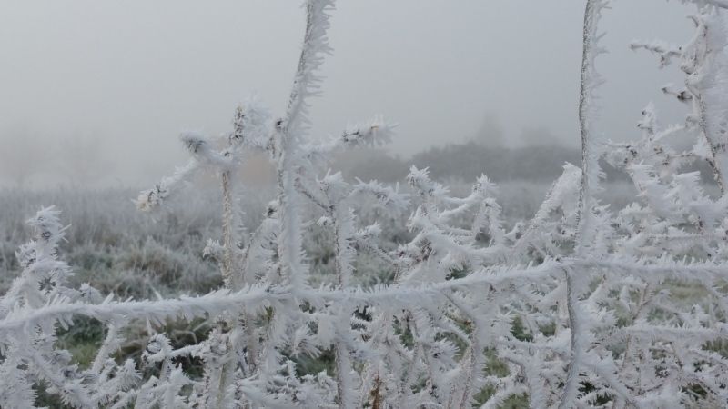 Paisajes espectaculares como consecuencia de las heladas nocturnas y la niebla. Empieza el mes con frío, ayer fueron muchos los pueblos que amanecieron cubiertos de 'blanco' por el hielo. Hoy la imagen se repetía.