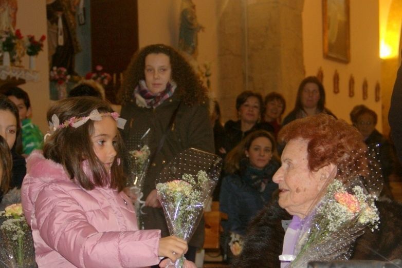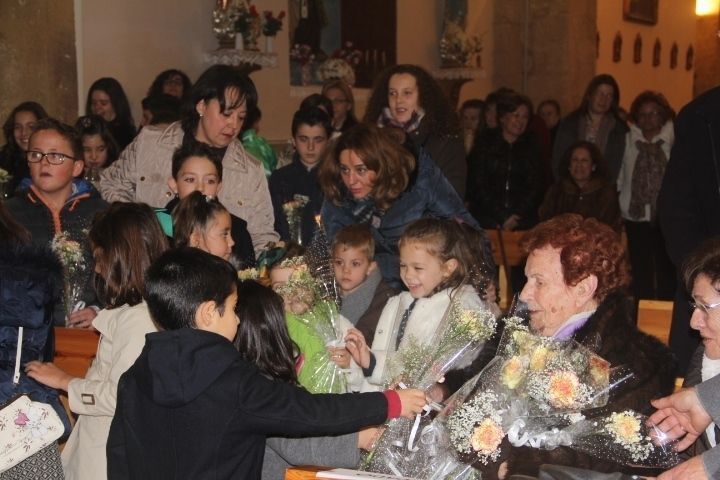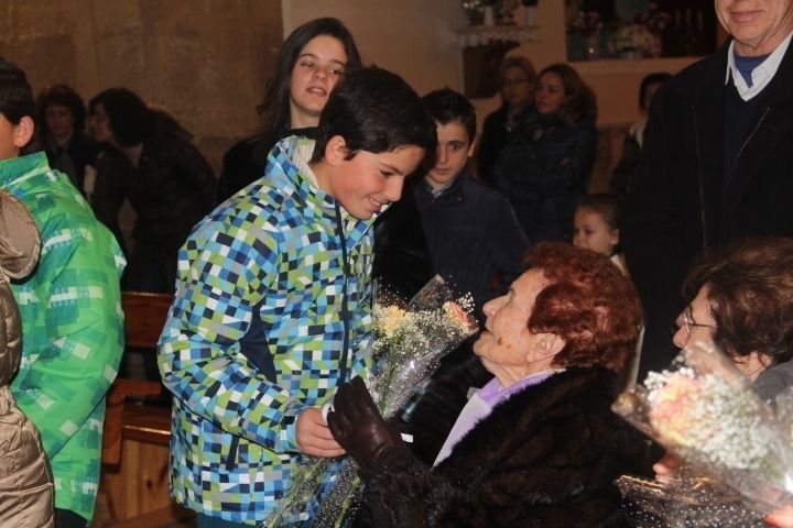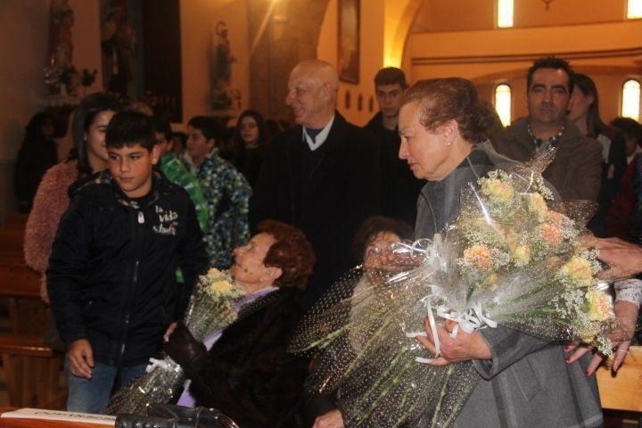 Los actos comenzaron en la celebración religiosa que ayer la tuvo como protagonista. Al finalizar la misa cada niño de la localidad la regaló una flor, símbolo de gratitud y amor, en un emotivo acto. El párroco, Don Juasto Rodríguez, en representación de toda la comunidad religiosa, la entregó una carta del Papa Francisco con motivo de su cumpleaños.