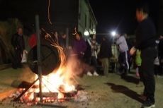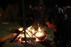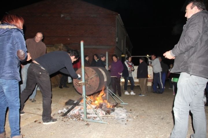 Al calor del fuego se asaron 30 kilos de castañas traídas de Galicia y 25 kilos de patatas que sirvieron de menú en una agradable tarde en la que no faltaron las anécdotas como dar vueltas al bombo sin estar cerrado y salgan las castañas y que sirvió para arrancar las risas de los presentes. Encuentro entre todo un pueblo que se hermanó alrededor del fuego.