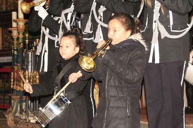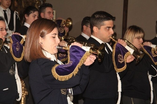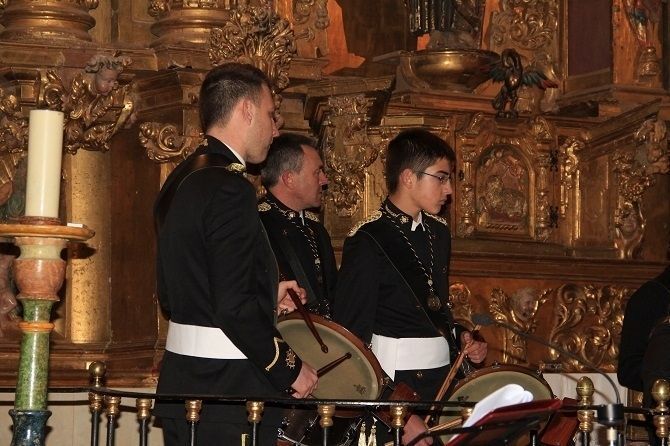 El acto arrancó con un pasacalles protagonizado por las bandas que llenaron la localidad de los acordes más típicos de la Semana Santa, a son de las cornetas y a ritmo de tambores. El frío y el viento trasladó el escenario habitual de este certamen -la Plaza Mayor- al interior de la iglesia El Salvador que, no sin embargo, goza de una extraordinaria acústica idónea para la realización de este tipo de actos.