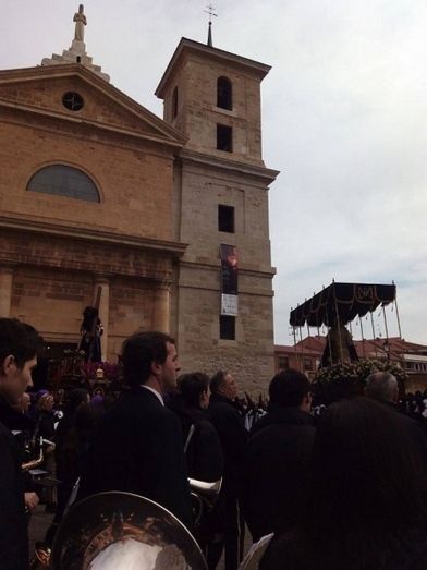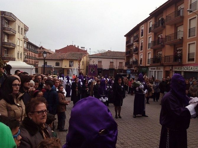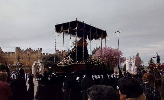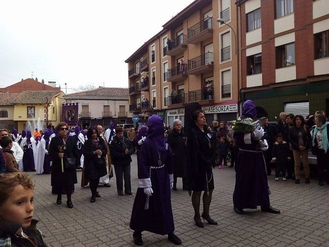 La procesión del Encuentro en Valencia de Don Juan abre el Viernes Santo para dar paso al tradicional Vía Crucis. Ante un cielo nublado, cientos de coyantinos y turistas presenciaron el emotivo encuentro que protagonizaron las tallas del Nazareno y la Soledad.