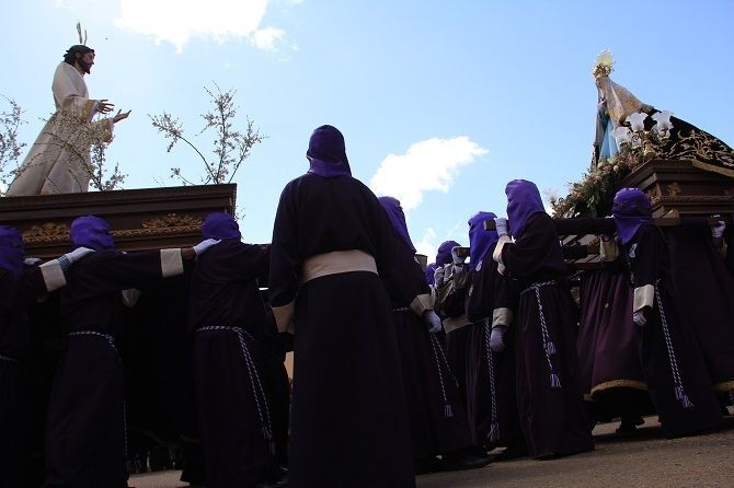 La procesión del Encuentro de Domingo de Pascua es la última de la agenda de la Semana Santa de Laguna de Negrillos. La imagen de La Soledad y el Cristo Resucitado, acompañados por la Banda de Cornetas y Tambores de San Roque de Valderas y la agrupación musical del Santo Criisto de la Bienaventuranza de León respectivamente, recorrieron por separado la localdiad para reunirse en la plaza de la Ermita donde tuvo lugar el Encuentro y la alegría de la Resurrección. La Soledad perdió su luto mientras las voces del Coro de la localidad alzaban cantos de esperanza, inmediatamente después los cofrades descubrieron su rostro como señal del final de la Semana Santa.