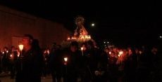 Entre cantos y oraciones, la procesión iluminó las calles de la localidad como un acto más enmarcado en la tradicional Fiesta del Voto. Ayer tuvo lugar la que ya es la sexta edición de esta cita procesional ya arraigada en muchos vecinos y devotos de la patrona, la Virgen del Arrabal.