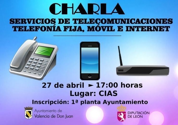 Por otro lado, esta tarde tendrá lugar una charla sobre servicios de telecomunicones (telefonía fija, móvil e internet). También tendrá lugar en el CIAS a las 17:00 horas. Las inscripciones en el Ayuntamiento.