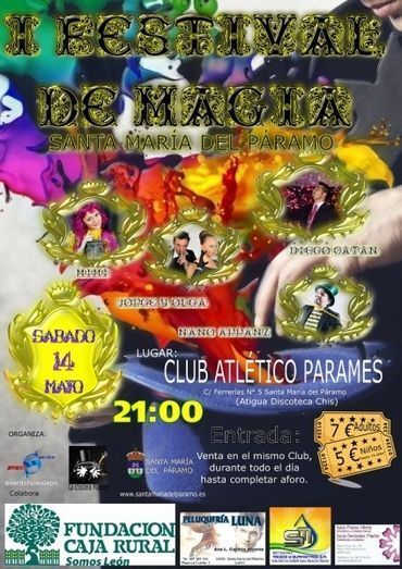 La magia aterrizará en Santa MarÃa del Páramo el próximo sábado, 14 de mayo, con la celebración del primer Festival de Magia. El evento, organizado por Eventshowsleon, la Chistera Mágica y la colaboración del Ayuntamiento de Santa MarÃa, tendrá lugar en la sala del Club Atlético Paramés.Â