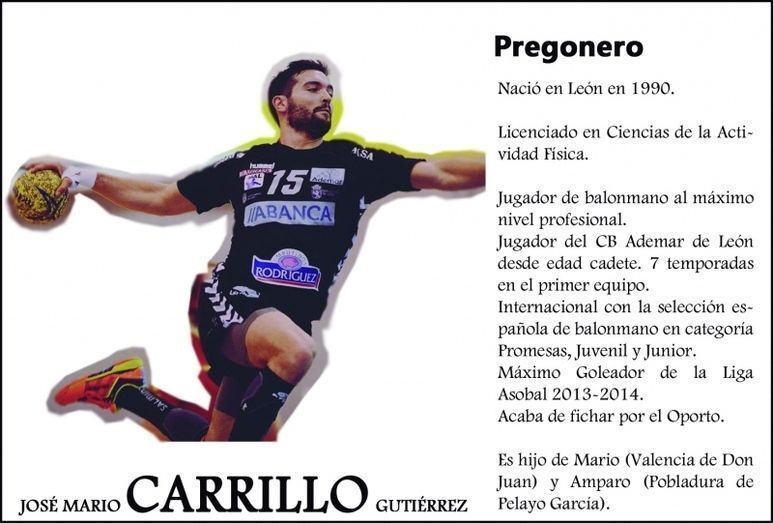 23:00 horas. Pregón a cargo de José Mario Carrillo Gutiérrez (jugador de balonmano) Lugar: Balcón del Ayuntamiento.
