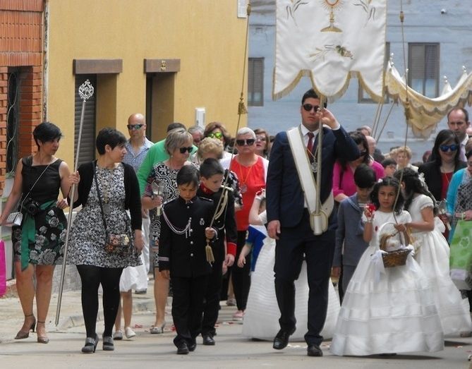 Los niños de Primera Comunión y decenas de feligreses acompañaron en esta tradición valderense que se suma al calendario procesional de estas fechas. El párroco emitió la bendición anual del altar bajo una lluvia de pétalos de flores y el intenso olor a incienso.