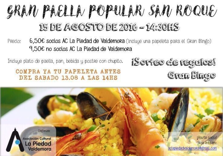 Todo aquel que desee asistir a la paellada del lunes debe comprar los tickets antes de las 14:00 horas de hoy sábado. El precio es de 6'50 euros para socios (incluye papeleta para el Bingo) y de 9'50 euros para no socios.