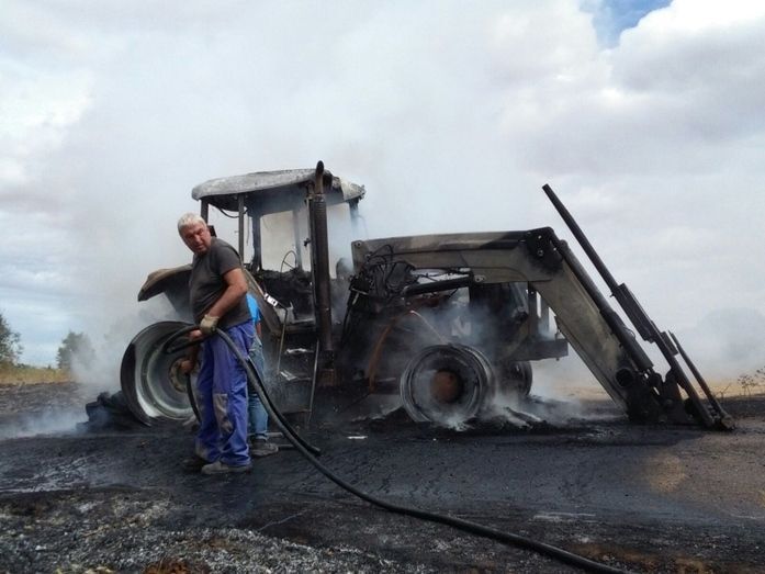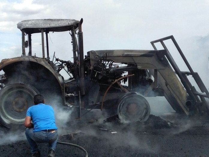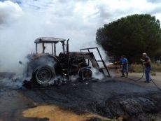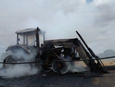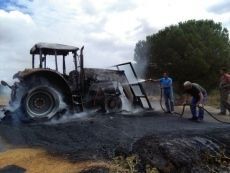 El incendio de un tractor corta la carretera que une Valderas con Campazas