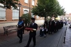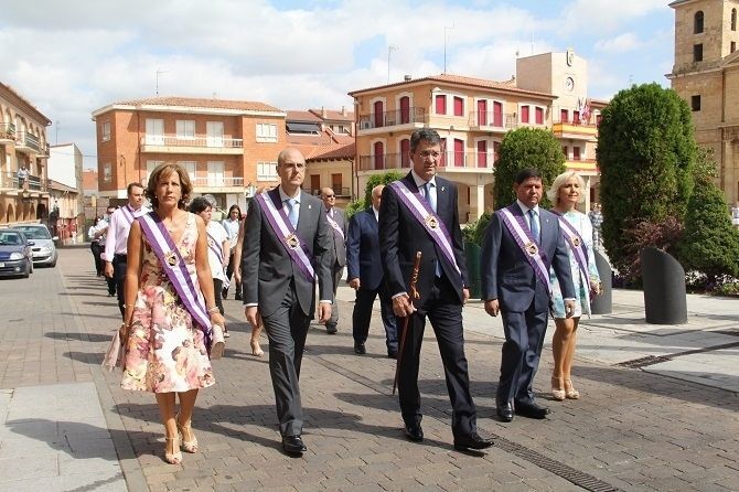 El pendón de la localidad abrió la comitiva que unió el Ayuntamiento con la iglesia de los Padres Agustinos donde ha tenido lugar la ofrenda y la celebración religiosa. El alcalde coyantino, Juan Martínez Majo, y concejales de la corporación municipal han participado en este acto. La reina, damams acompañados por sus acompañantes, la dama infantil y el paje, todos ataviados con los trajes típicos han realizado una ofrenda floral a la patrona. La banda sonora fue puesta por la Banda de Música de Valencia de Don Juan.