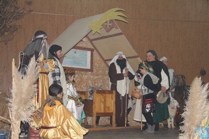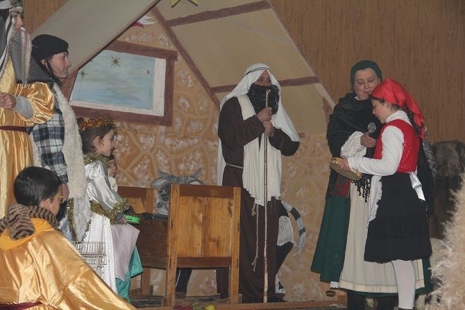 Tras el recorrido de la cabalgata la recepción de los Reyes Magos continuó en la Casa de Cultura donde tuvo lugar un Belén Viviente. María, José y el Niño, pastorcillos, lavandera, tejedora y más personajes revivieron un Misterio que conquistó a todos los presentes que entonaron villancicos en tan mágica tarde.