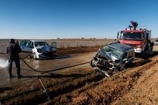 Tres heridos en un choque frontal entre dos turismos