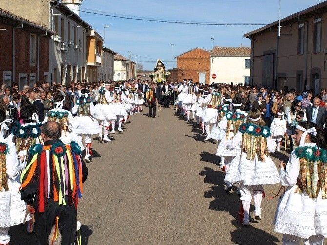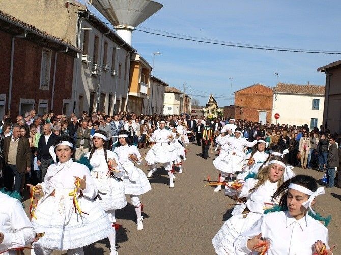 El acto central de la fiesta tuvo lugar por la tarde. La procesión recorrió las calles de la localidad acompañada de los danzantes que representaron una vez más el baile alegórico entre las fuerzas del bien y el mal – los danzantes son los ángeles y los birrias son los diablos-. Este año la comitiva de danzantes estuvo acompañada por el grupo de danzas la Barbacana de Ribera de Órbigo.