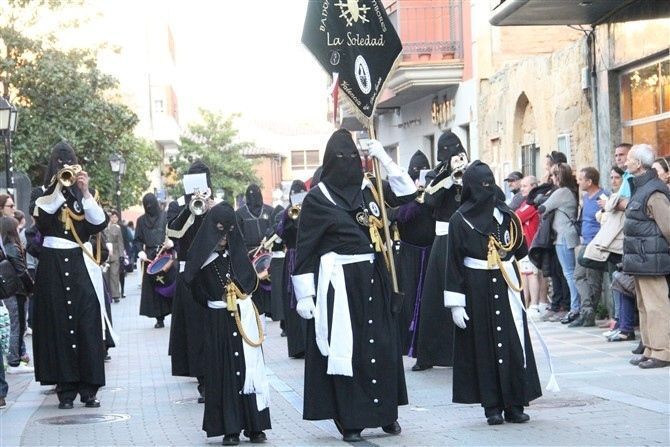 El Sábado Santo en Valencia de Don Juan es para la procesión de La Soledad. Organizada por la cofradía de Nuestra Señora de los Dolores y Soledad, 30 braceros pujan por la imagen que recorre el centro de la localidad desde la iglesia de San Pedro hasta la iglesia de los Padres Agustinos.
