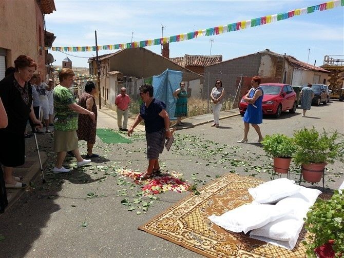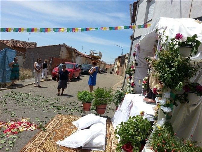 Valderas celebró el Corpus rindiendo homenaje al Santísimo. Como es tradición dos altares fueron los preparados, uno en el Arco Santiago y otro en la zona alta de Valderas, los Castillos. La Virgen de la Cabecica y del Carmen presidieron respectivamente cada uno de ellos.