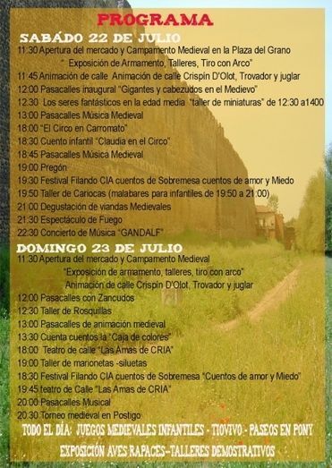 El campamento medieval y la animación de calle regresa hoy de nuevo a la localidad. El juglar más famoso del panorama actual, Crispin D'Olot encandilará a todos los presentes con sus romances y canciones (11:30 horas). Además habrá pasacalles de zancudos (12:00 horas) y varios talleres (de rosquillas y marionetas). La jornada también contará con cuentacuentos (13:30 horas), teatro de calle 'Las Amas de CRIA' (18:00 horas y 19:45 horas,) y un filandón de cuentos (18:30 horas).