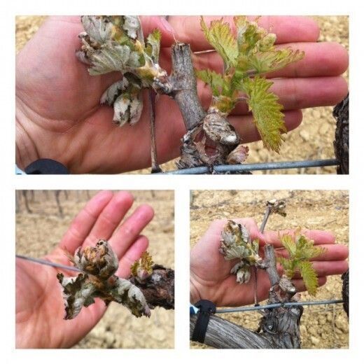 Los órganos helados a estas alturas, son las yemas que han brotado primeras y que por lo general se trata de las francas, aquellas que nos van a dar lugar a los racimos, con lo que el efecto de la helada es devastador, mermando en consecuencia la producción de ese año.