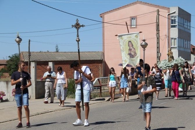 Ayer el pueblo festejó su fiesta con la celebración de una procesión entre la iglesia y la zona de las lagunas junto a las piscinas donde tuvo lugar una misa de campaña. Abriendo la procesión el pendón de la localidad acompañado del de Valencia de Don Juan.