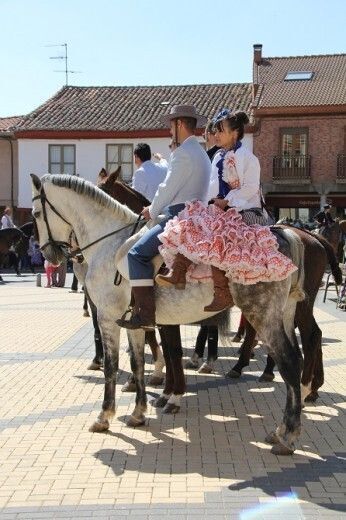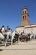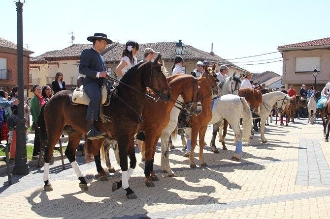 [Img #3125]La hermosa Plaza Mayor de Villamañán casi se quedó ayer pequeña para las cerca de 90 monturas, carros y romeros que participan de la IV Feria Rociera del Hostal Palazuelo. Un evento que, poco a poco, se va consolidando en el calendario festivo. Cada año son más los que se animan a participar de la programación ofrecida por el establecimiento para tres días con mucho sabor flamenco.