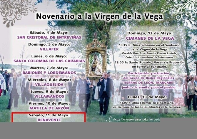 Un novenario que comenzó el pasado sábado con la primera de las citas, la promesa realizada por la localidad zamorana de San Cristobal de Entreviñas. El domingo cumplieron su Voto los de Villafer y ayer los zamoranos de Santa Colomba de las Carabias. Hoy martes es el turno de los de Bariones y Lordemanos. Mañana será Villaquejida la que cumpla su promesa. El jueves Villamandos, el viernes Matilla de Arzón (Zamora) y el sábado Benavente (Zamora). La ronda la cerrará el pueblo de Cimanes de la Vega el domingo con la fiesta en honor de la Virgen.