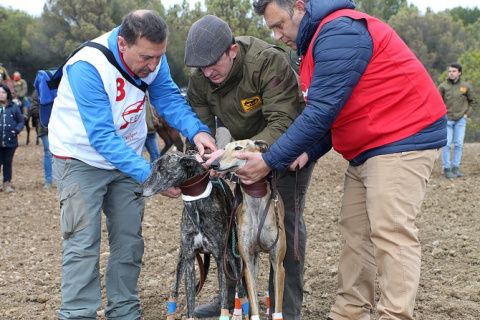 Una sola liebre de 59" disputaría esta collera. La suelta fue dificultosa y Corina de Martos salió sin liebre, por lo que los jueces debieron hacer una segunda pitada cuando consideraron que la perra andaluza ya estaba engalgada.