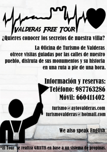 Juvenil Valdecea para colaborar con sus actividades culturales programadas este verano. Para asistir a los Free Tours es necesaria un realizar por teléfono (987763286), por email (turismo@aytovalderas.es) o a través de