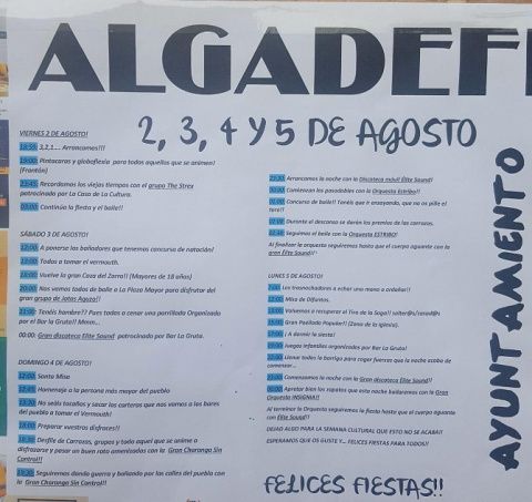 La fiesta finalizará el miércoles. Está prevista una fiesta de la espuma e hinchables (17:30 horas y durante toda la tarde). También en la agenda sobresale el Certamen de Música Clásica y Moderna que está previsto a las 20:00 horas. Una animada parrillada unirá a todos los vecinos en convivencia (21:00 horas) que podrán disfrutar de la orquesta Zafiro en la última noche festiva en la que también habrá momento para el bingo y la chocolatada.