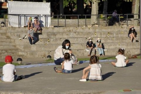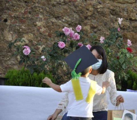 Sin besos ni abrazos, con medidas de seguridad y distancia social, los alumnos de la Escuela Infantil PequeCoyanza y sus familias se despidieron de su educadora y su centro cerrando así la primera etapa educativa de su vida